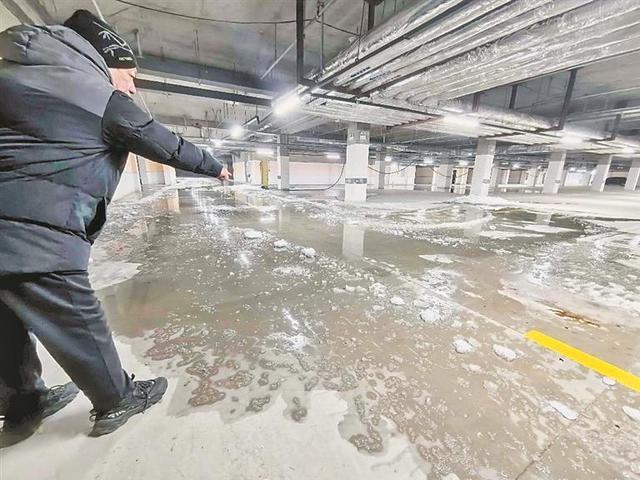 当天,记者在小区地下车库看到,车库内几乎没有车辆,部分区域出现结冰,有的地方还没有冻实,地面有积水。居民张先生表示,他们是20日发现地下车库漏水的,马上联系了物业,物业称是由于自来水管线接口冻裂导致的。“后来居民家里也陆续开始停水。”