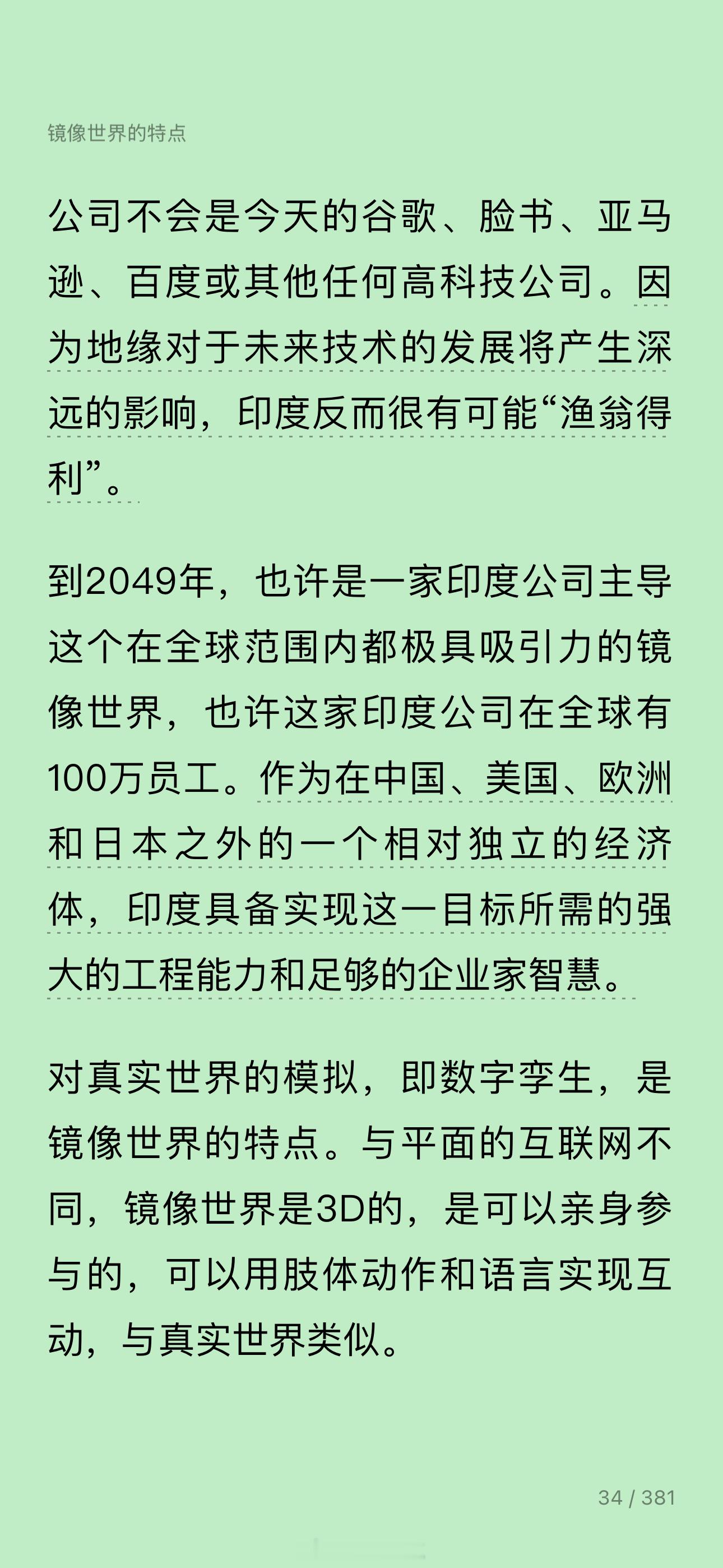 抗博读书 智能眼镜将取代智能手机,因为它是通往镜像世界的路。作者说,镜像世界的赢家不会是中美,而是印度。。。。评论区的看法如图3