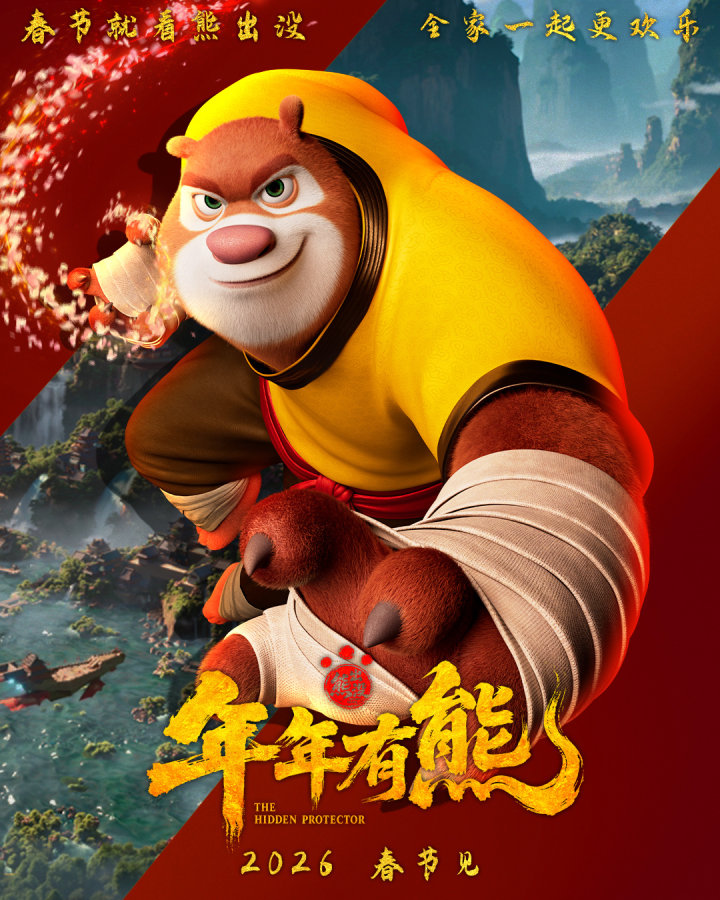 作为《熊出没》系列继“科幻五部曲”后创作的首部中式奇幻创作,《熊出没·年年有熊》此番迎来全面升级“升维”,神秘力量的介入使“熊强三人组”意外获得神力,解锁了各自的属性之力。熊大身上泛起金色神秘纹路,熊二头顶生角威风凛凛,光头强则长出浓密头发并拥有雷电环绕的超能力,三人的全新形象颠覆了以往的设定,为影片增添了更多奇幻色彩和喜剧效果。该片也是该系列第12年征战春节档,正好完成了一轮十二生肖。