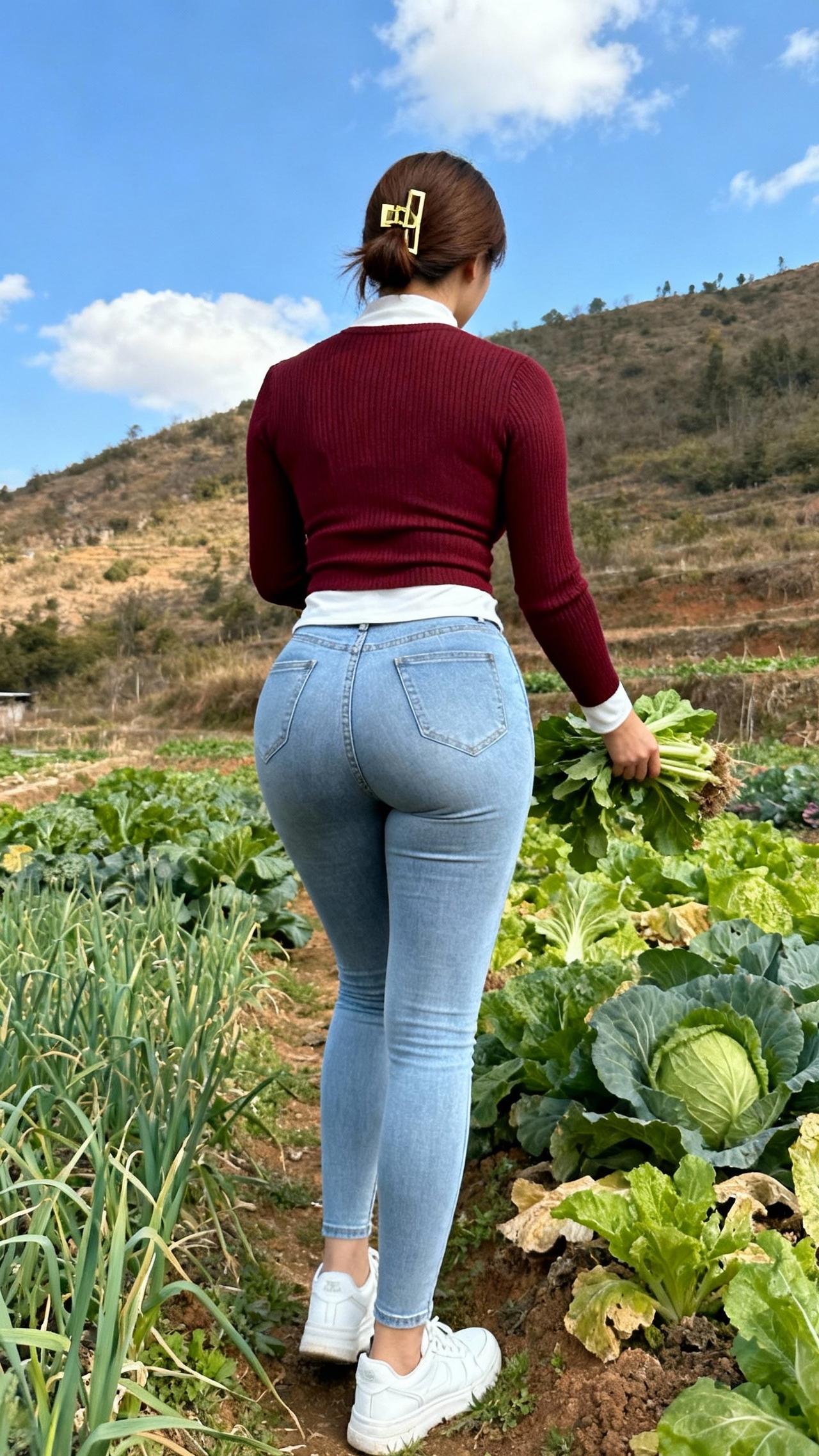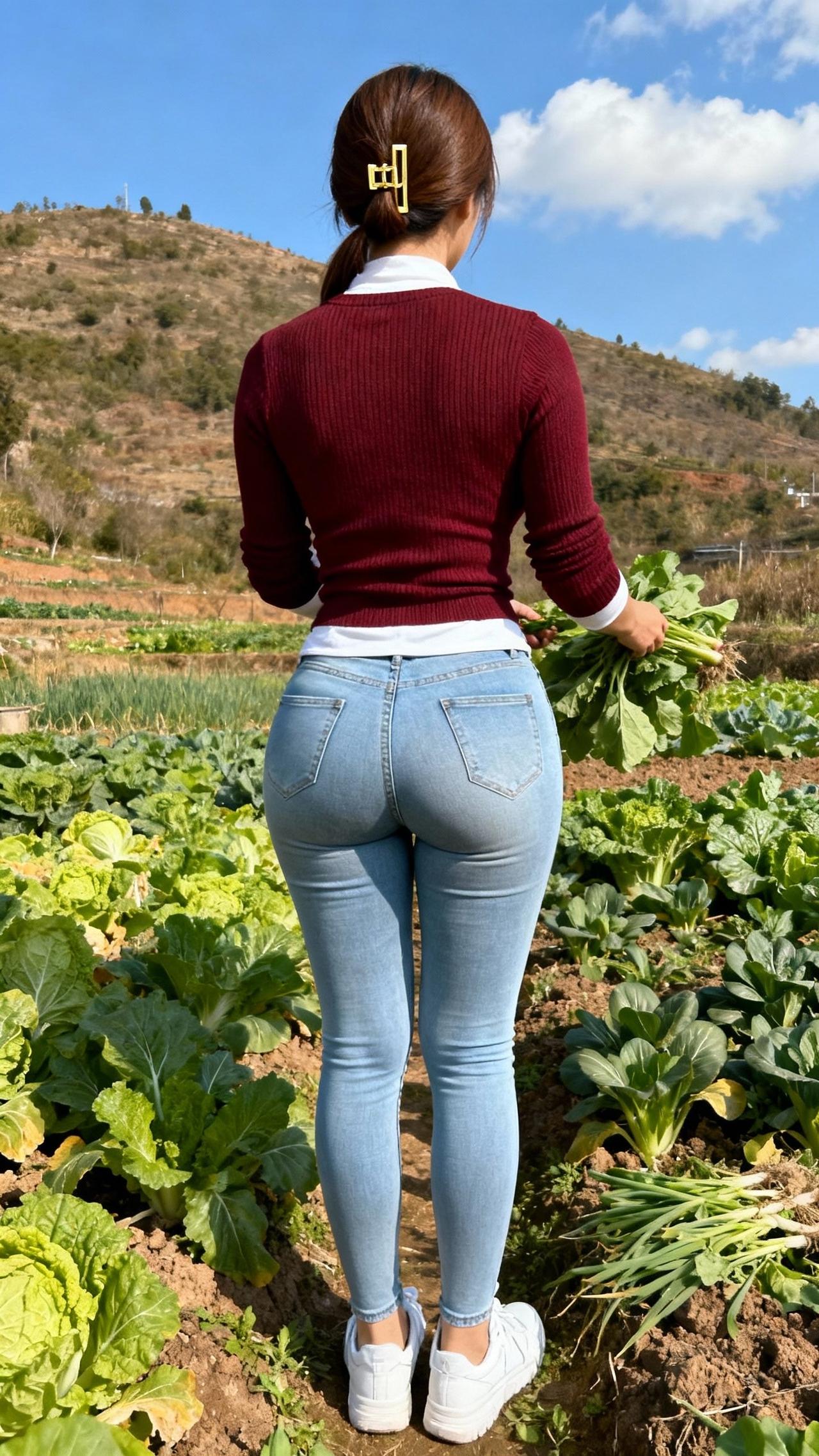 晴暖的日光铺在乡野的菜畦,摘菜的动作轻缓地将鲜绿的菜叶拢在掌心,泥土的腥甜混着菜