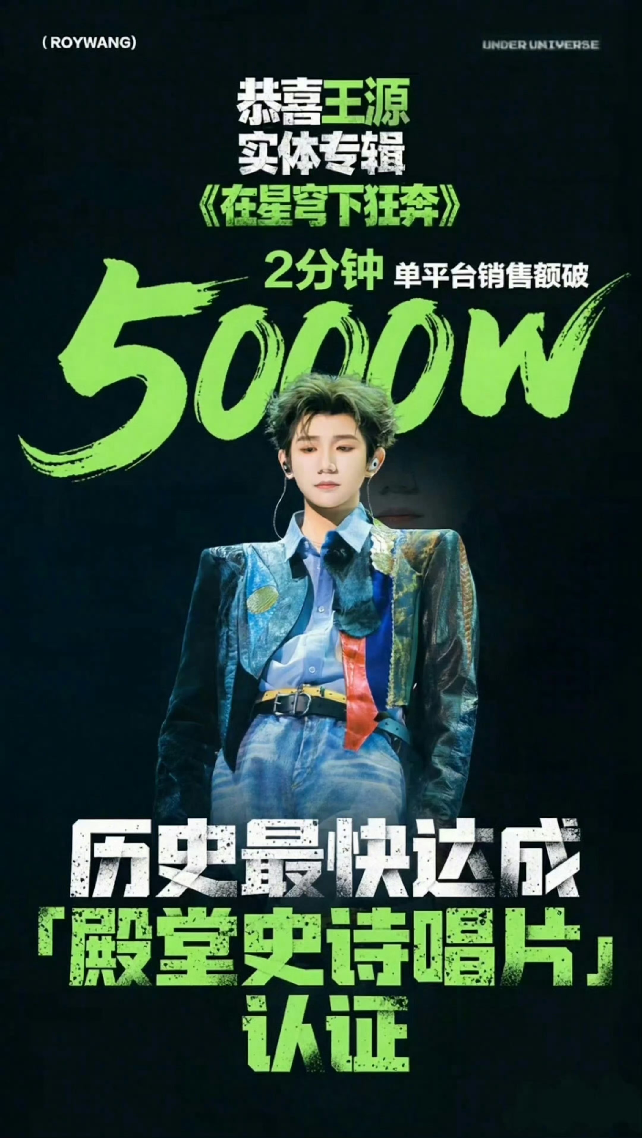 王源实体专辑2分钟破5000w王源实体专辑《在星穹下狂奔》Q音捷报,两分钟五千万
