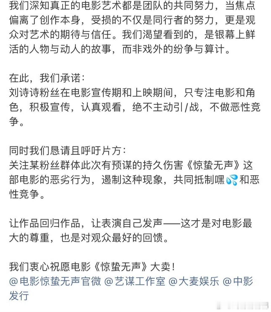 惊蛰无声定档刘诗诗粉丝倡议书,疑似控诉蜜蜂,毕竟两位85花同在一部电影里