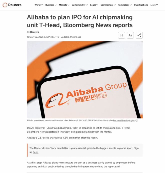 此外,据路透社报道,作为上市前的第一步,阿里巴巴计划先对平头哥进行重组,将其转变为一个由员工部分持股的独立实体,随后再探索首次公开募股(IPO)的可能性。目前具体的上市时间表尚未明确。