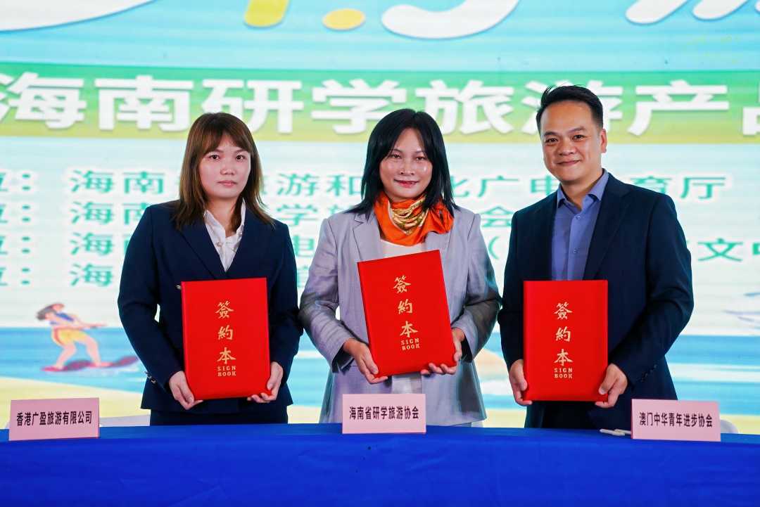 当天,海南省研学旅游协会、澳门中华青年进步协会、香港广盈旅游有限公司,共同签署琼港澳研学旅游战略合作框架协议。此次签约将推动琼港澳三地实现研学领域的客源互送、资源共享、市场共建,进一步拓宽海南研学旅游客源渠道,为海南研学产品走向港澳市场搭建了重要桥梁。