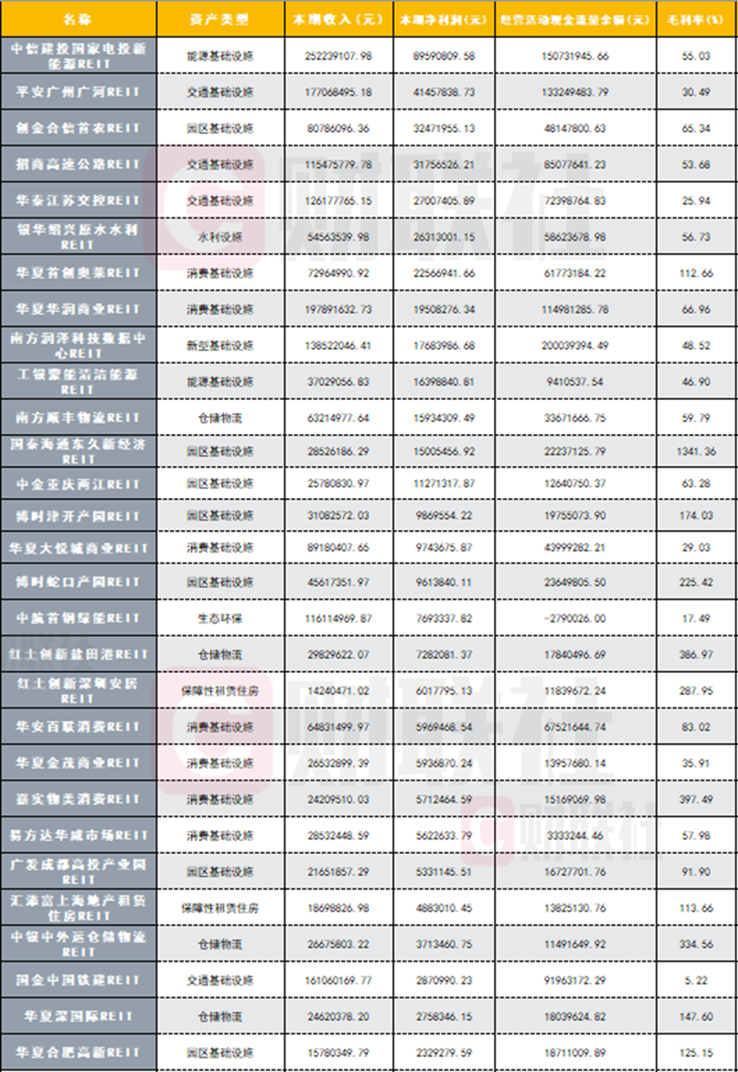 从资产类型来看,四季度表现较好资产主要来自能源、交通、园区和消费类基础设施项目,从毛利率来看,国泰海通东久新经济REIT四季度毛利率高达1341.36%,数据显示,该项目两个园区(东久南通智造园及东久重庆智造园一期项目)的出租率均达到100%,四季度营收2853万元,实现净利润1501万元。