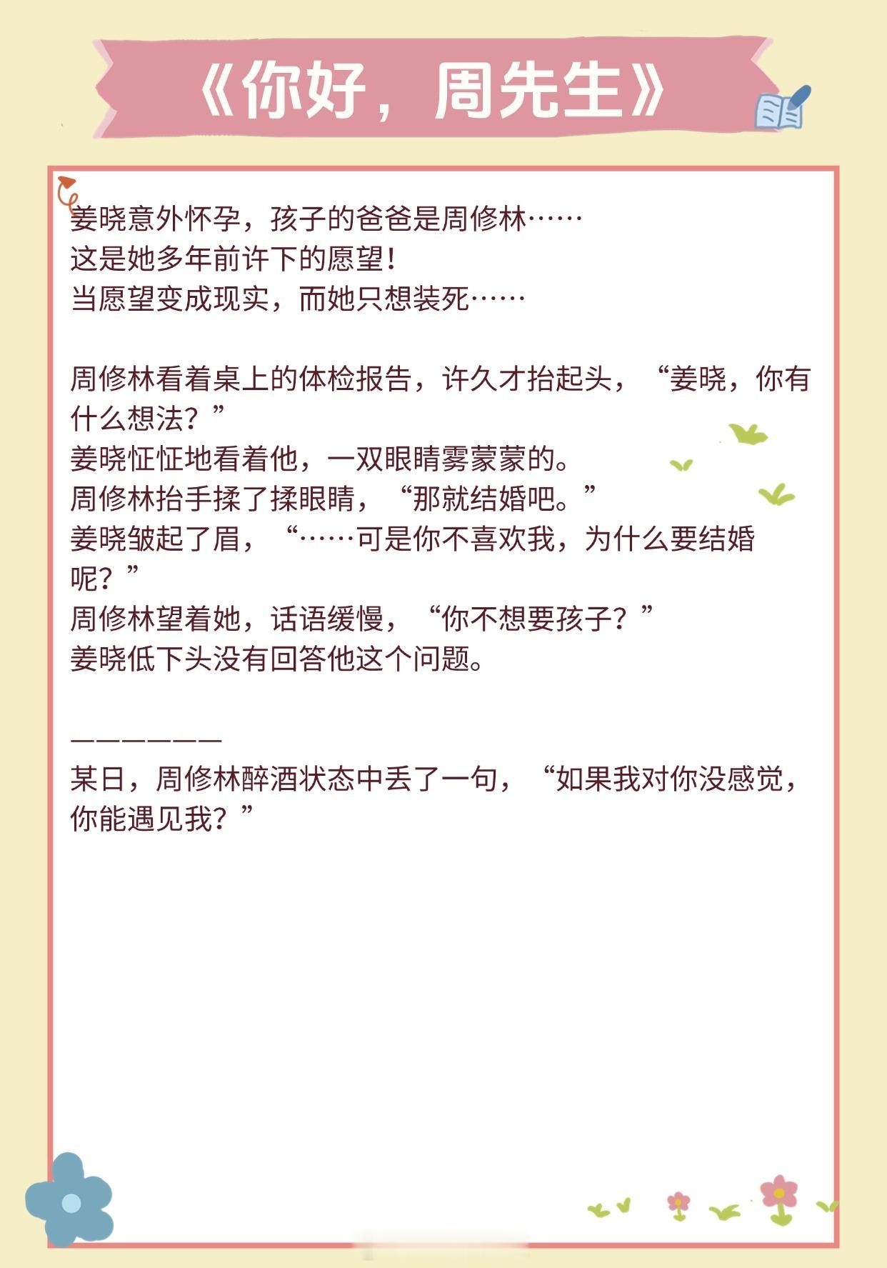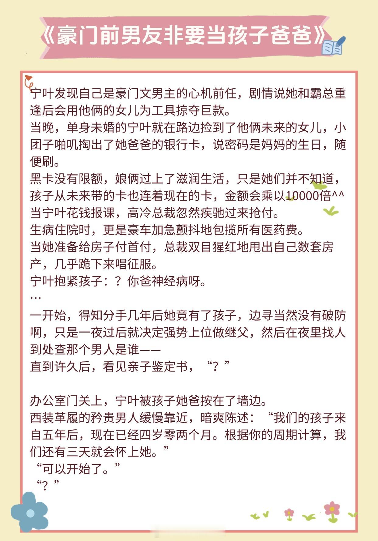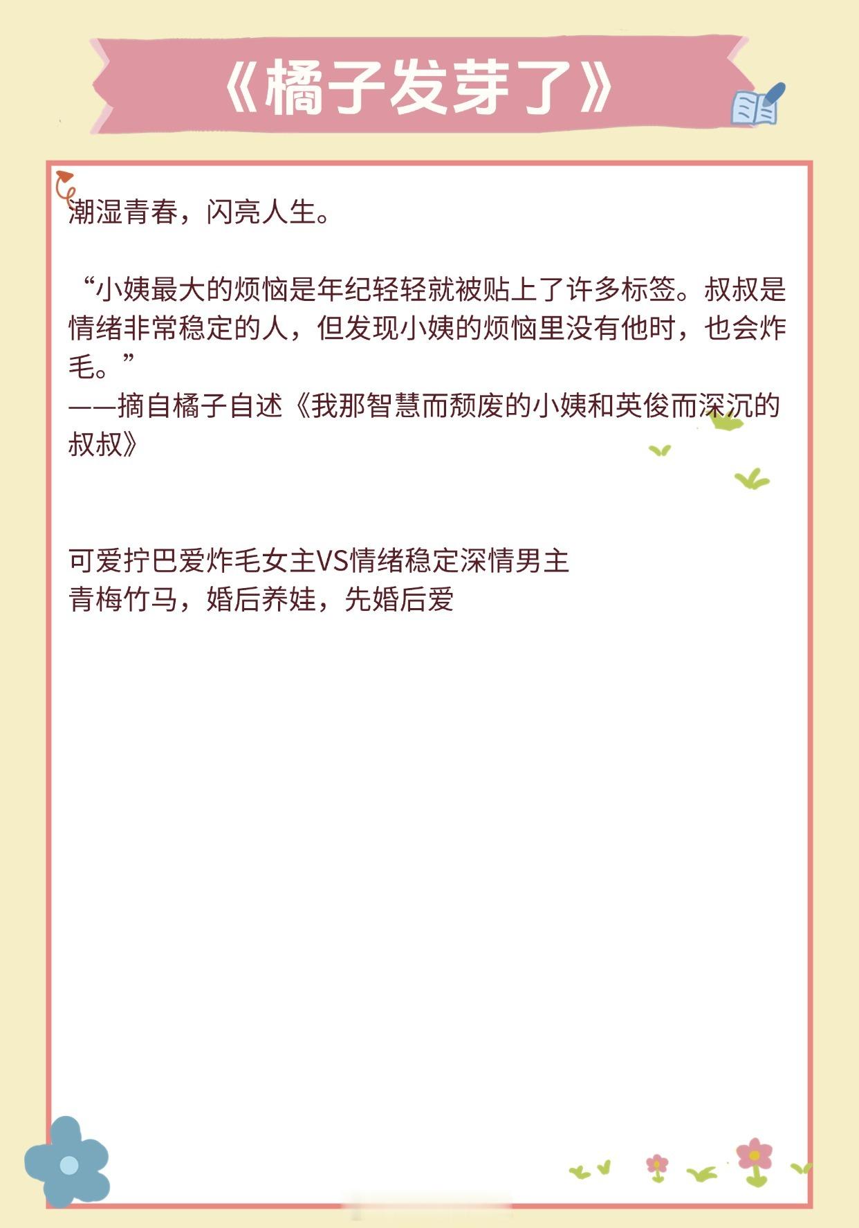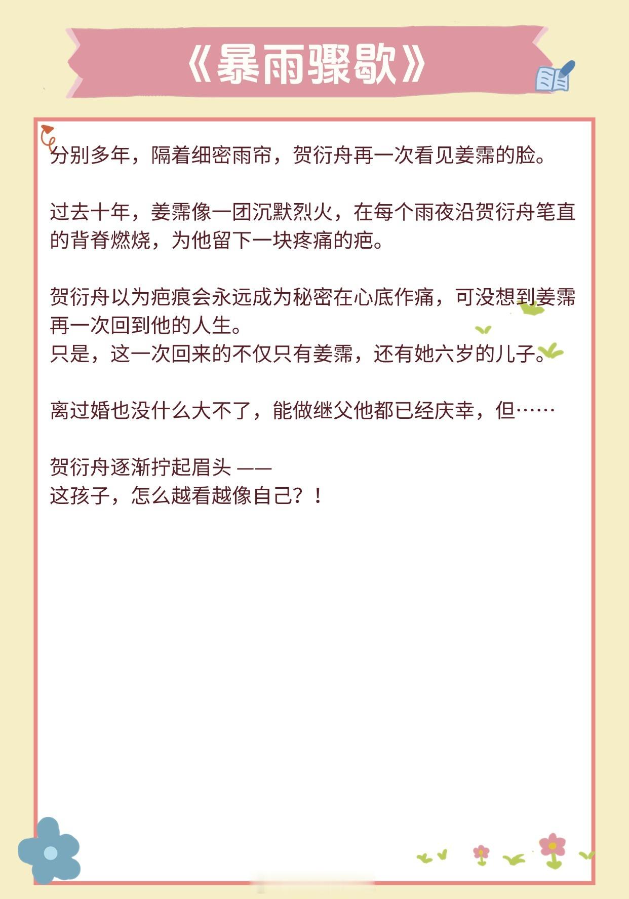 【超甜养崽文】他让她懂得了爱一个人的感觉《隐婚带娃日常》作者:苏其《豪门前男友非要当孩子爸爸》作者:赵史觉《旧爱》作者:关就《暴雨骤歇》作者:江言之《和前夫同居了》 作者:林春令《橘子发芽了》作者:夏诺多吉《长宁》作者:潇茫《你好,周先生》作者:夜蔓《公主病观察日记》作者:铁扇公子推文言情小说推荐推文