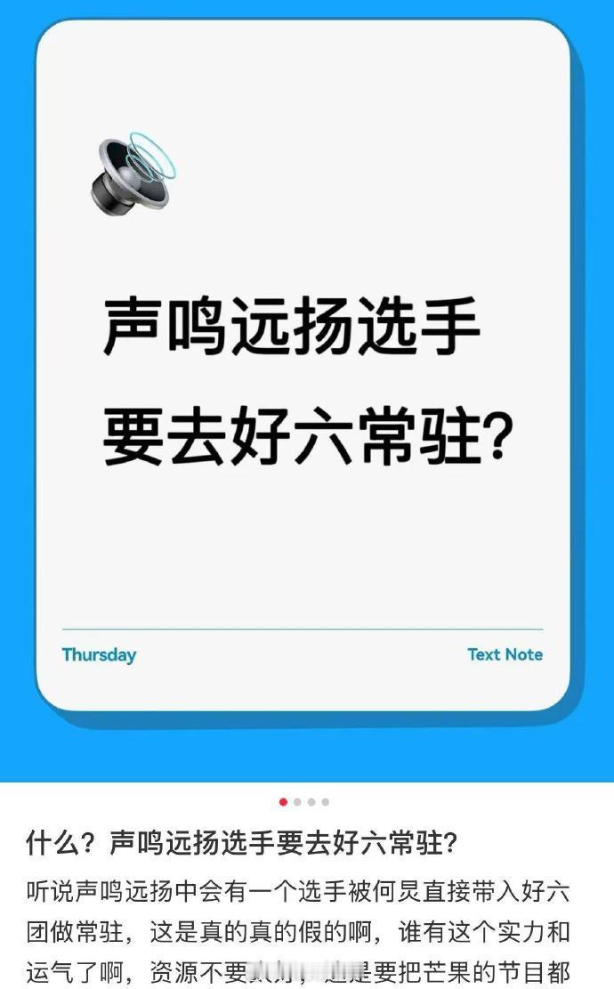 声鸣远扬选手常驻好六团谁还没被芒果的手笔震撼到!声鸣远扬选手档期排满,还能拿下好六团常驻,慕了!声鸣远扬