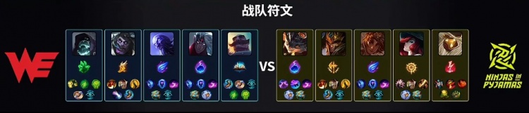 后期WE拿到大龙,双方经济持平。随后WE利用大龙buff推掉NIP种下高地塔,经济反超3k。