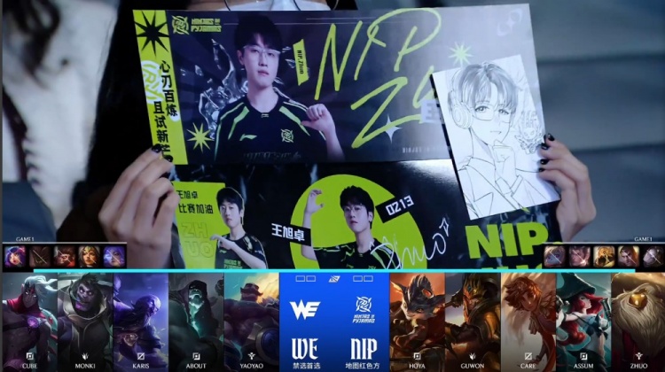 第一局前期潮虫团,About韦鲁斯TP来正面落地成盒,Assum女枪轰出三杀,NIP打出1换4。紧接着WE入侵NIP野区又被打出1换4,Guwon皇子扣两人让Assum女枪扫满大招,Assum战绩来到5-0-2,NIP经济领先3k。