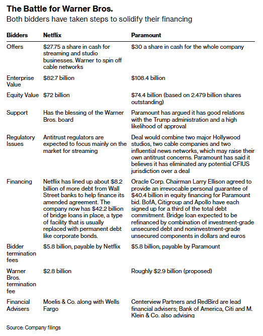 这场围绕华纳兄弟的竞购战,是近年来规模最大的媒体行业交易之一,其结果或将重塑全球娱乐产业格局。华纳兄弟曾打造《卡萨布兰卡》、《蝙蝠侠》等经典影作,派拉蒙自去年9月起便在积极推进对该公司的收购,而流媒体行业龙头奈飞则是半路杀出的意外竞标者——去年10月华纳兄弟启动出售程序后,奈飞才正式加入竞购行列。