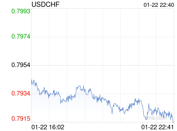 新浪外汇消息2026年01月22日,截至22时40分,外汇市场上美元兑瑞士法郎汇率跌破1美元兑换0.7914瑞士法郎。跌幅为-0.5029%