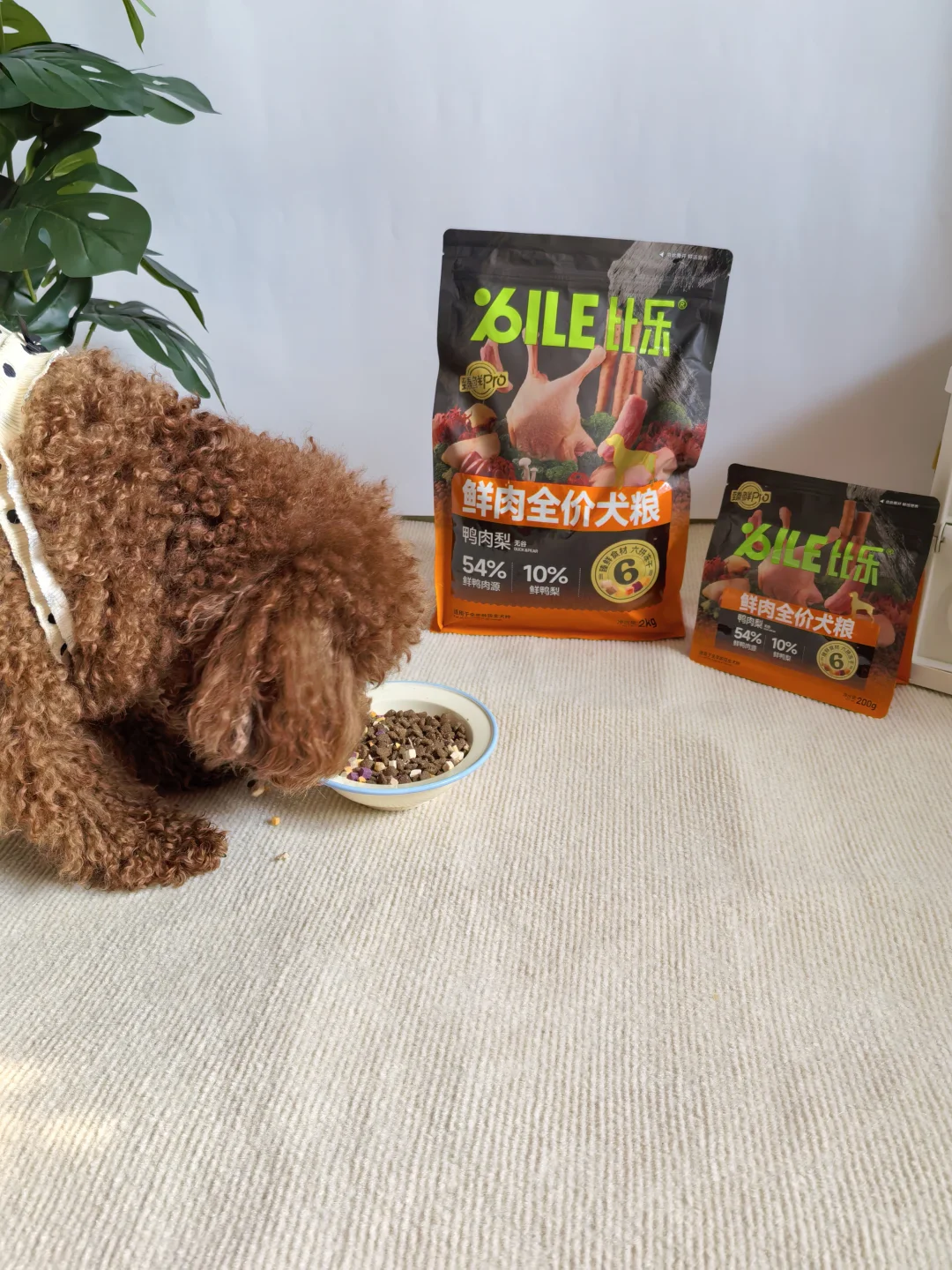 每次开袋就围着转圈圈🐾,鸭肉的鲜香混着淡淡梨香,挑食怪都吃得吧唧嘴😋~ 颗粒大小超适合泰迪小口啃,吃完嘴边干干净净不沾毛✌~ 老母亲表示超满意💯!