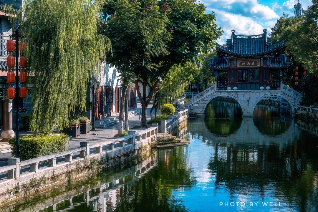 古镇内比较特别的是有条桃花溪,这在云南的古镇中很难得,很像江南的古镇,桃花溪的溪水碧流贯穿古镇中部,上有六座石桥,站在桥上是观赏古镇的好位置。古镇的毕摩文化广场是展示彝族各种节庆活动的重要场所,每天晚上都有篝火晚会,游客可与彝族同胞一起跳舞。