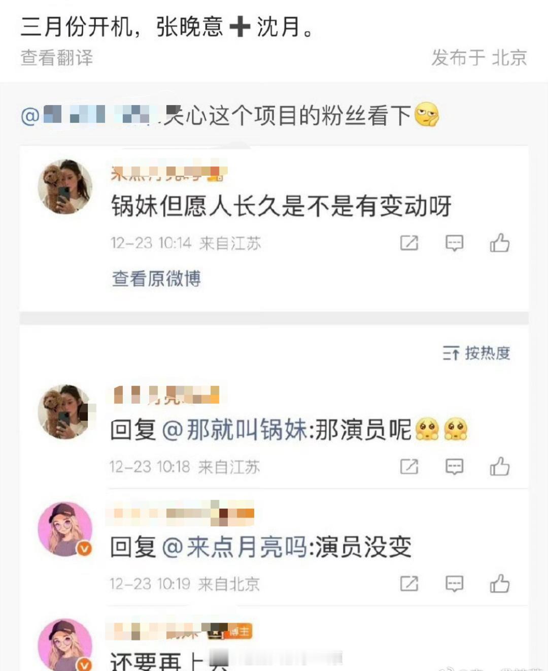 《但愿人长久》主演还是:张晚意 沈月,暂时没变