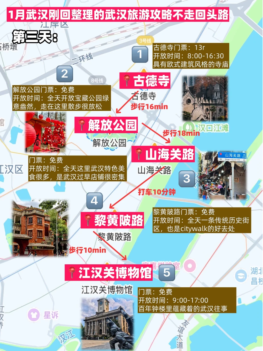 路线:古德寺 → 解放公园 → 山海关路 → 黎黄陂路 → 江汉关博物馆