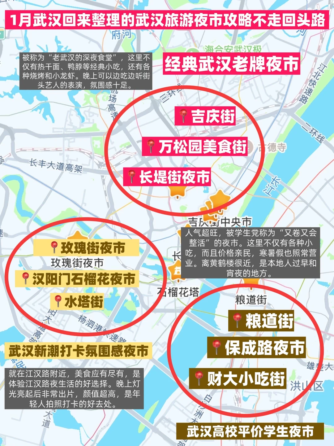 吉庆街、万松园美食街、长堤街夜市,江汉路步行街
