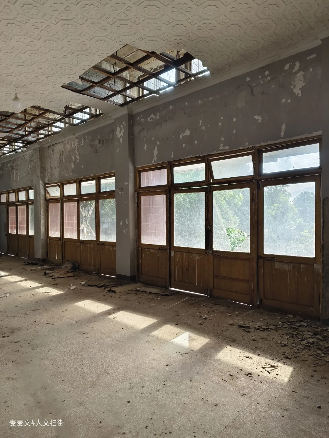 没人知道被红砖封死的礼堂里,那些木质座椅是否还整整齐齐,舞台幕布是否还悬在半空。阳光穿过破碎的窗棂,在积灰的地板上投下光斑,像是旧电影里的帧,把关于青春、欢笑与告别的记忆,永远封存在了西山坪的岁月里。