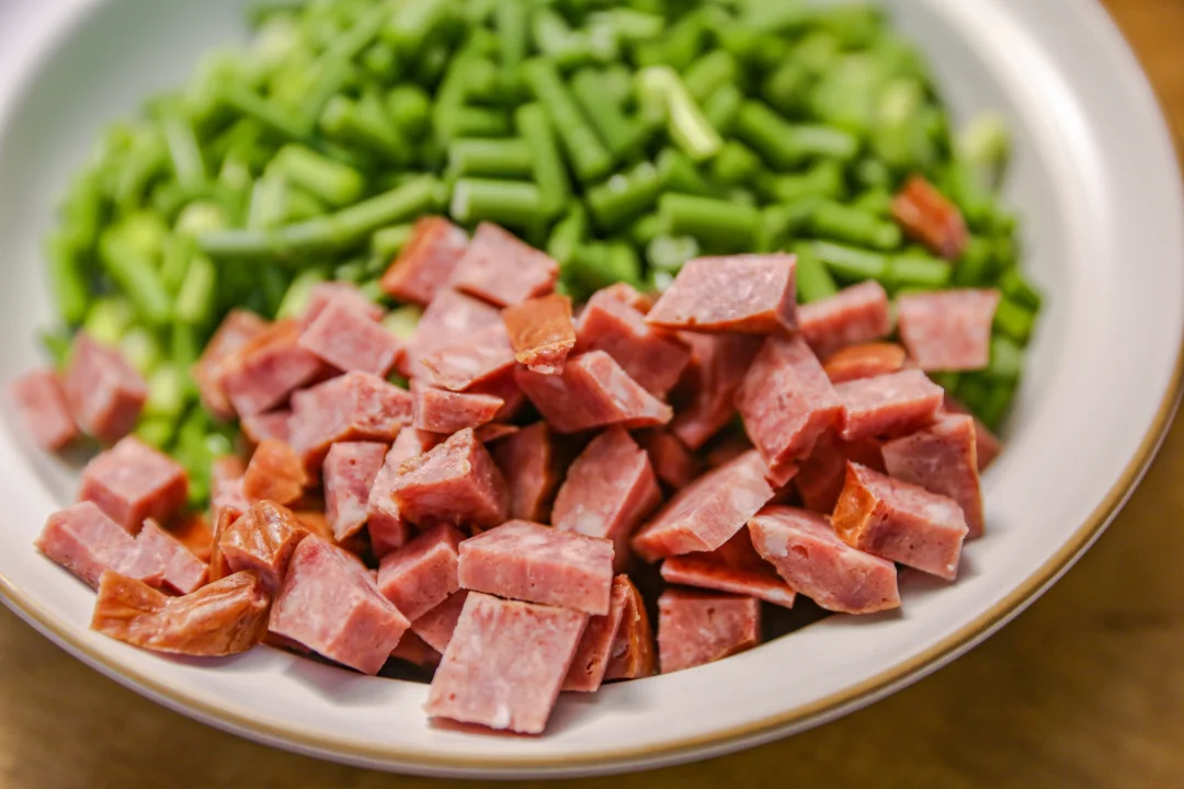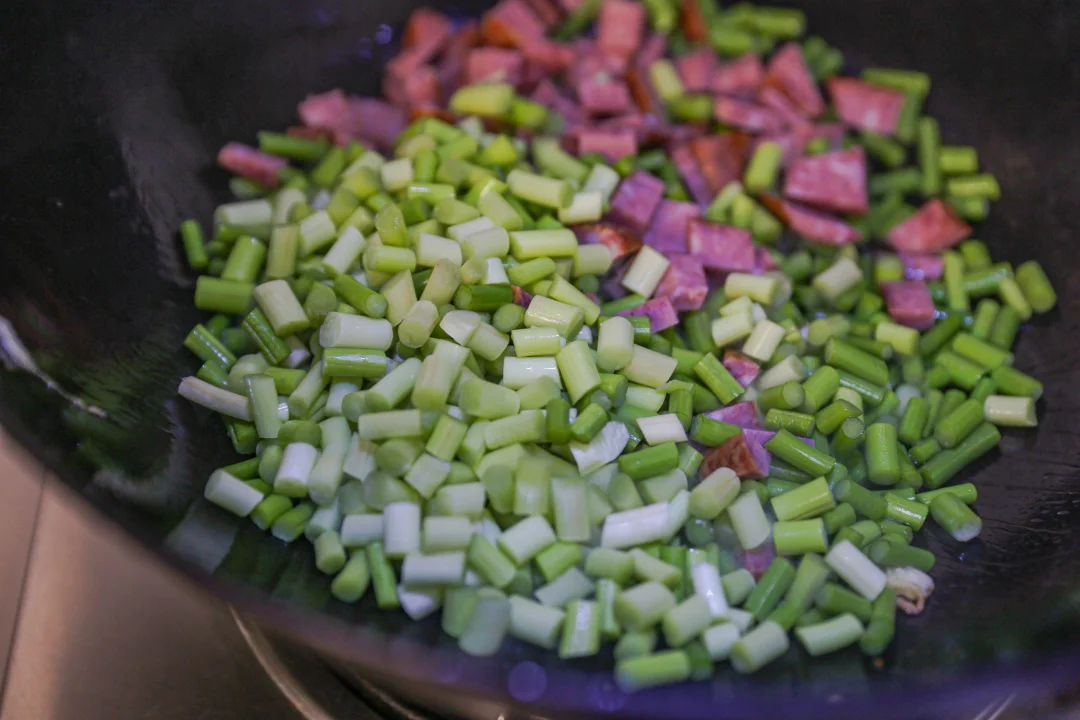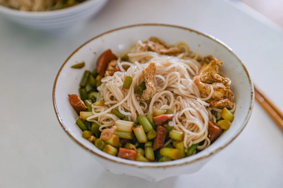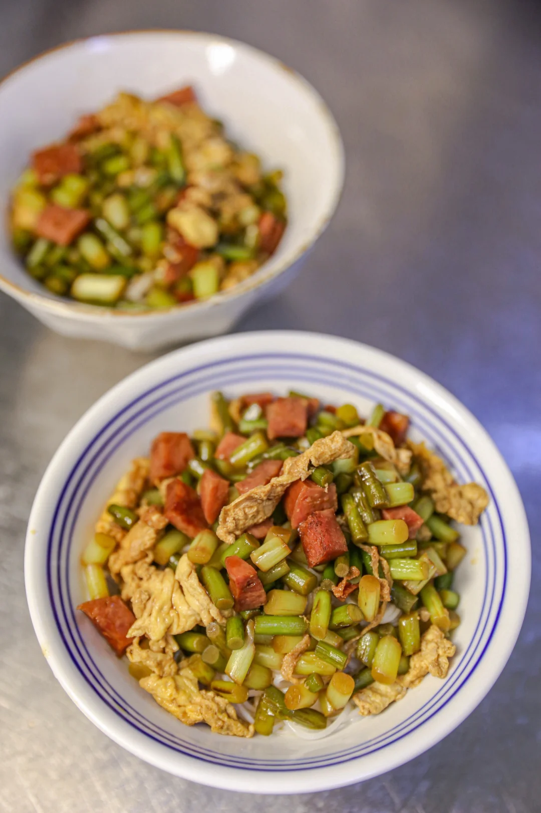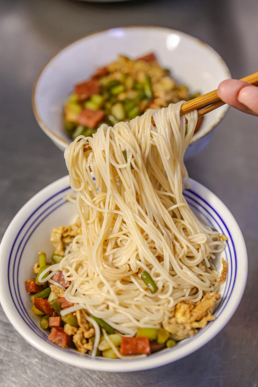 坚持做1000种面不重样(308)蒜苔火腿拌米粉