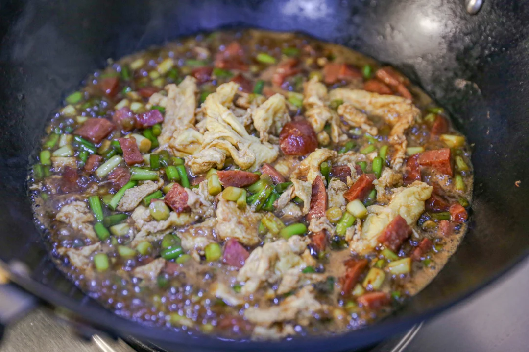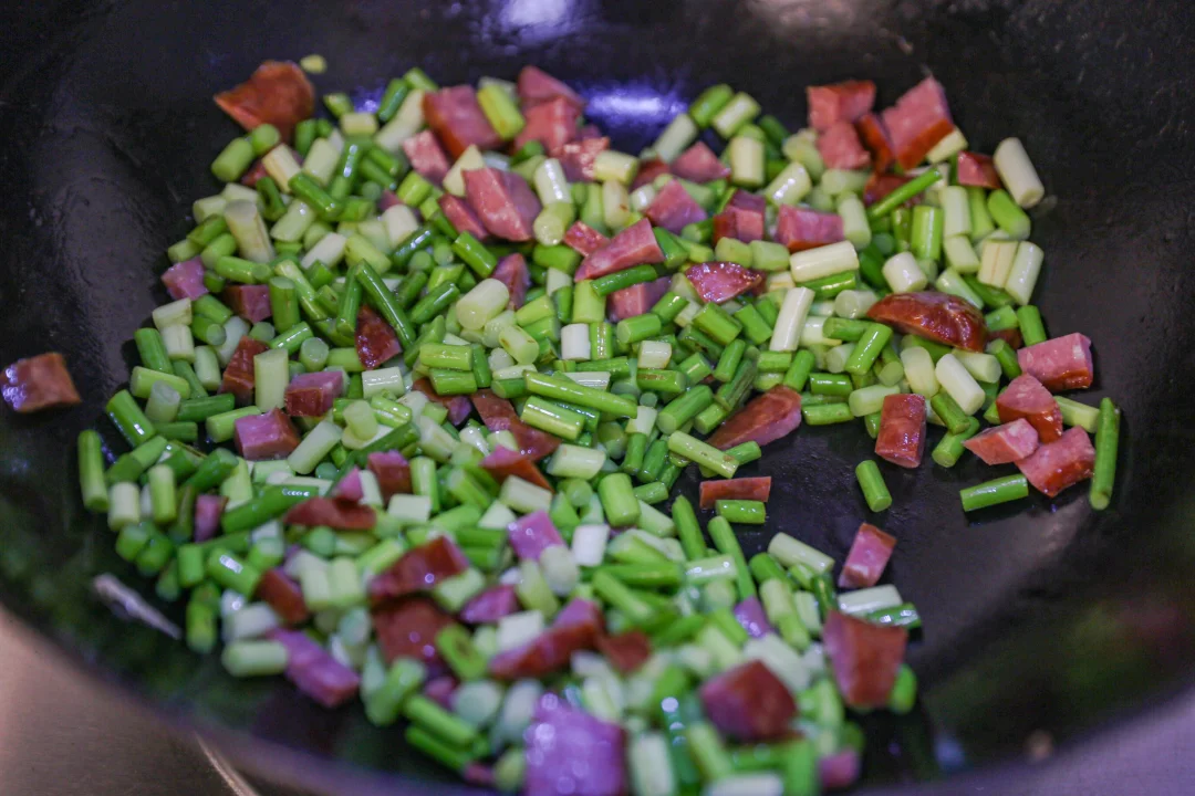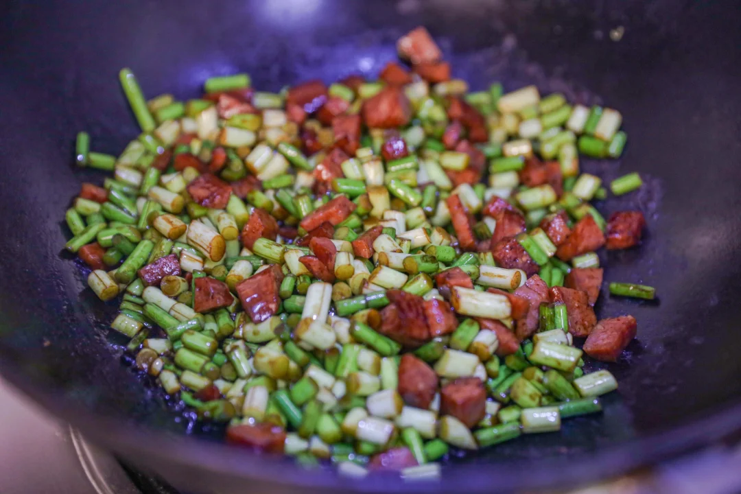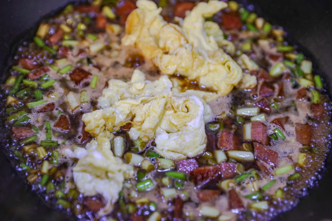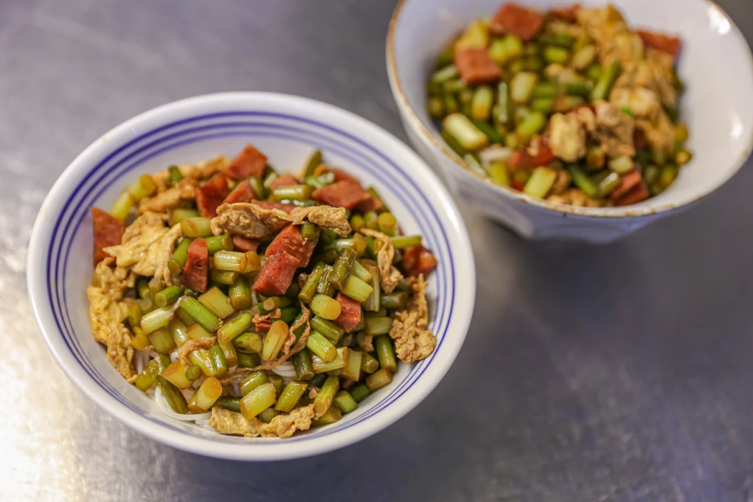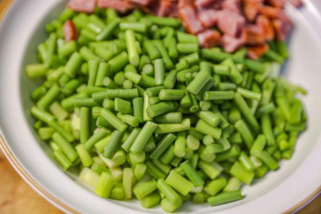 坚持做1000种面不重样(308)蒜苔火腿拌米粉