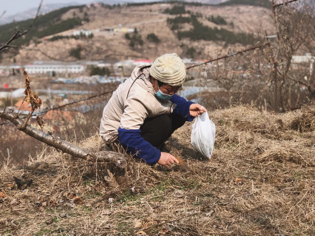 早上起来,我们就上山挖荠菜了。整个山上,满地的、没冒芽的果树,连空气感觉都是甜的。