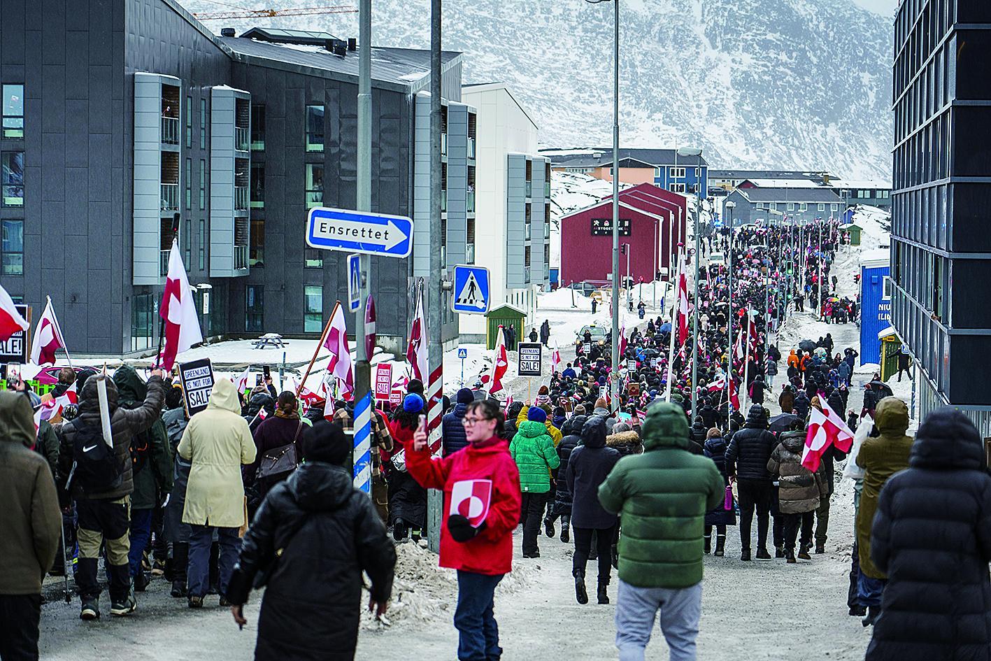1月17日,人们在丹麦自治领地格陵兰岛首府努克参加示威游行。新华社发
