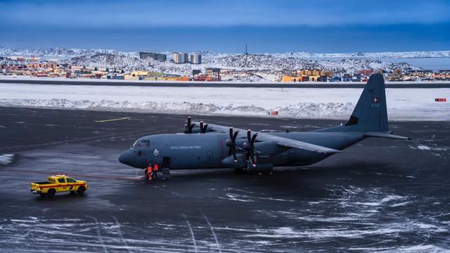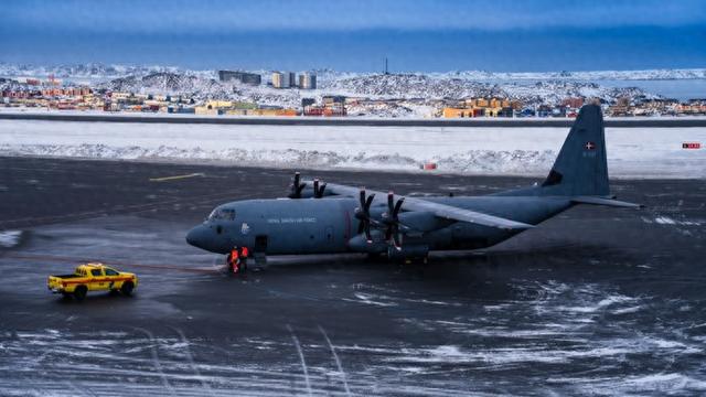 这是1月15日在丹麦自治领地格陵兰岛首府努克机场拍摄的一架丹麦空军“超级大力神”运输机。新华社发