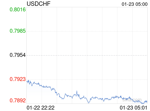 新浪外汇消息2026年01月23日,截至05时00分,外汇市场上美元兑瑞士法郎汇率跌破1美元兑换0.7894瑞士法郎。跌幅为-0.7543%