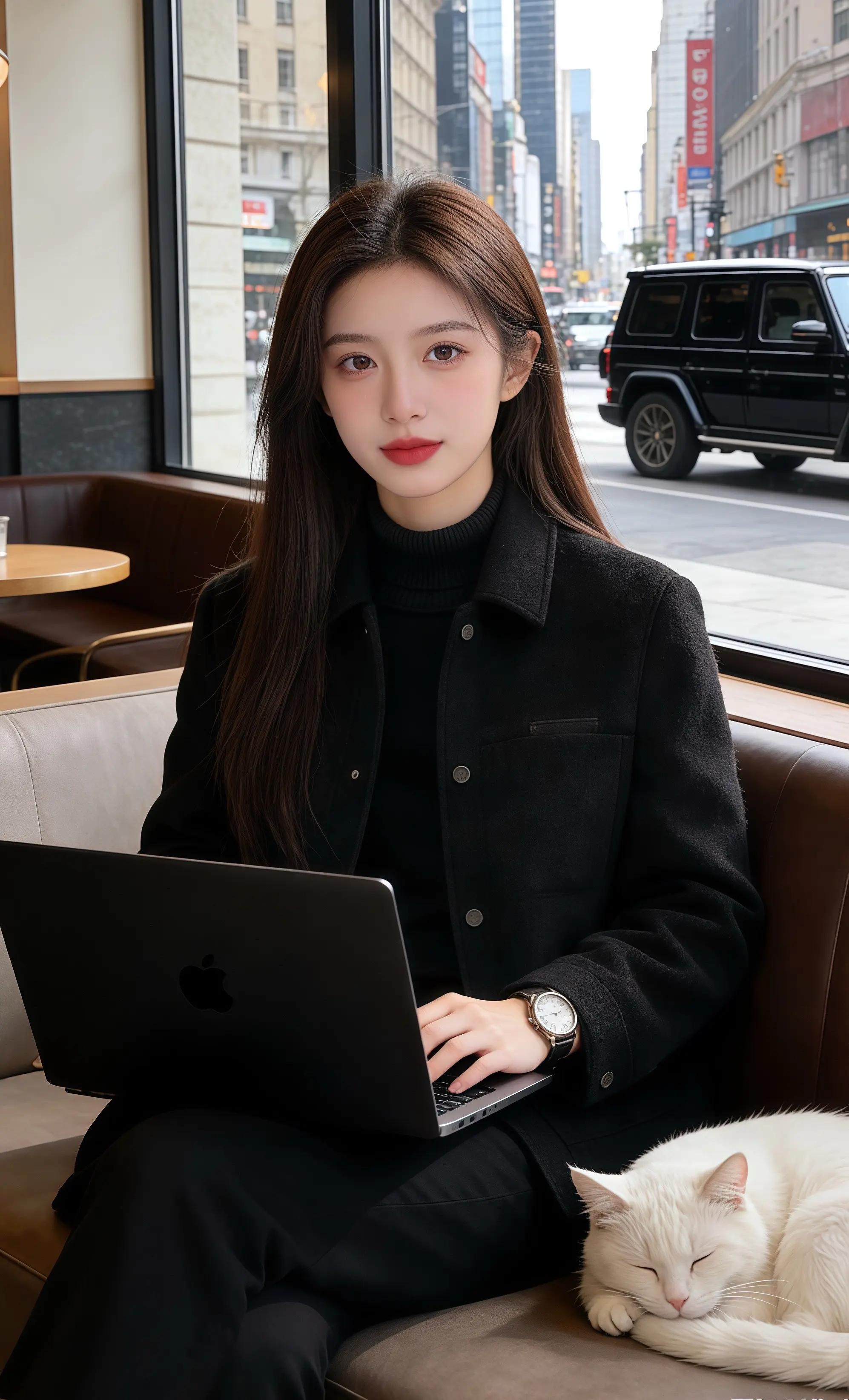 她低头看屏幕时,外套衣摆轻垂,膝头蜷着的白猫更添了几分软意,竟比海报里的展示多了鲜活的温柔。“这黑呢外套的搭配,你穿得比海报合衬多了,店里的款式都衬不出这份雅致的美感。”皓明走近开口,许妍抬眸笑时,眼尾的弧度撞得他心尖发暖。