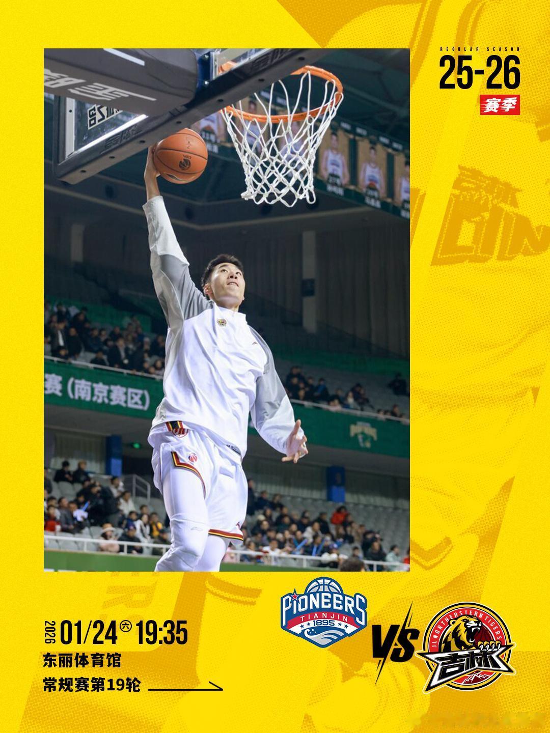 虎扑01月23日讯明日CBA常规赛,吉林将对阵天津。