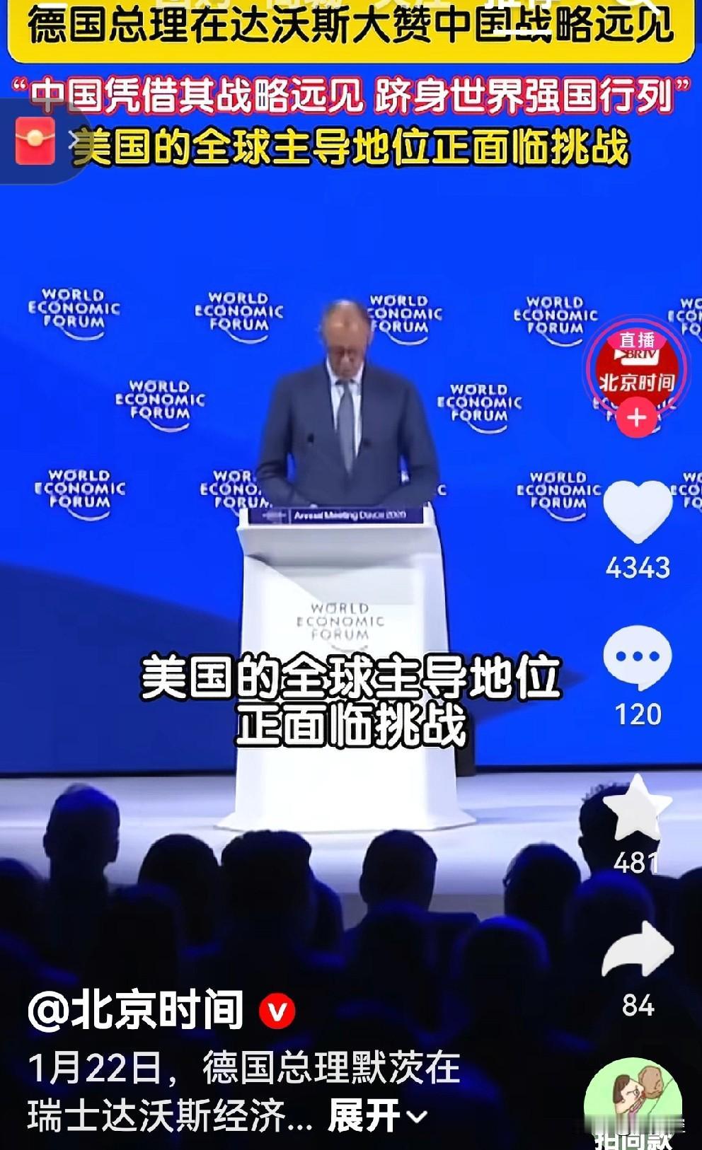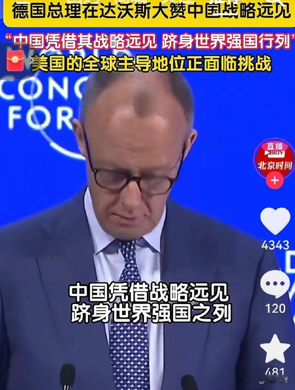 德国总理默茨在达沃斯论坛上盛赞中国的战略远见。 这不是恭维,不像北约秘书长吕特恭维特朗普爸爸那样肉麻。 德国原本是我们在西方国家中经贸商业合作最合拍的一个。那是默克尔时代,一个工程师,出身于东德家庭的女性,把握自主外交和地缘政治的方向,务实而不偏激,德国企业深耕中国市场,中国企业奔赴德国取经发展,双向奔赴,卓有成效的合作也给世界经济的发展带来稳定性。 实际上德国也是欧洲国家的一个缩影,后来大家都知道了,右翼政党狂飙,民粹大行其道,意识形态强加泛安全论调,跟随美国脚步,挤压中国发展。 结果就是大家在今年达沃斯论坛看到的一幕,特朗普公开羞辱欧洲领导人,以高傲的姿态把欧洲各国批的一塌糊涂,他们才开始清醒一点。英国首相斯塔默已经开启访华行程,默茨也很快。芬兰总理来了。 国人谚语“失道寡助得道多助”。中国的战略远见卓识让他们领略吧。
