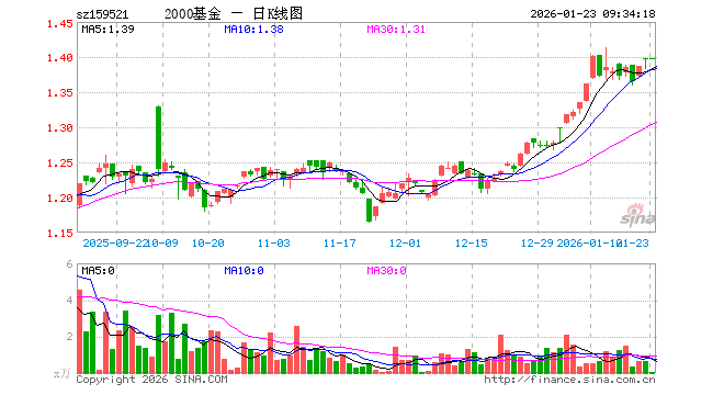 1月23日,国证2000ETF指数基金(159521)开盘涨0.14%,报1.398元。国证2000ETF指数基金(159521)重仓股方面,赛微电子开盘跌1.54%,剑桥科技跌0.74%,永鼎股份跌0.32%,东材科技涨0.00%,臻镭科技涨2.26%,中孚实业跌0.21%,光库科技跌0.94%,云南锗业涨0.00%,乾照光电涨0.89%,云天励飞涨1.41%。