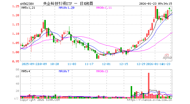 央企科技引领ETF(562380)业绩比较基准为中证国新央企科技引领指数收益率,管理人为银华基金管理股份有限公司,基金经理为王帅,成立(2023-06-26)以来回报为23.23%,近一个月回报为19.04%。