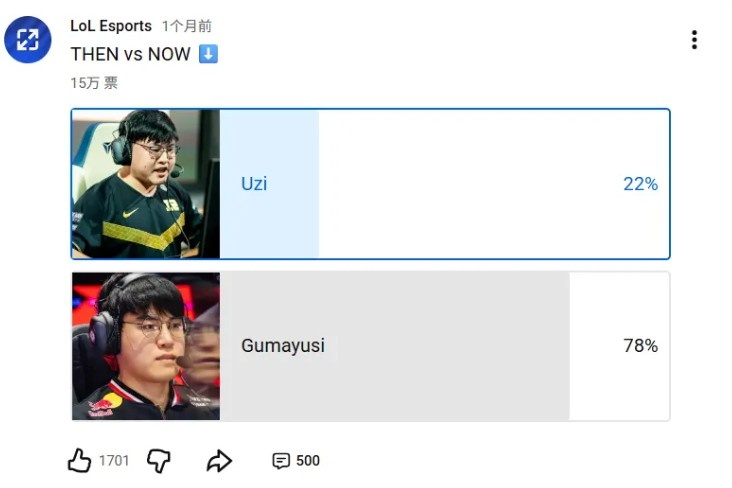 我投了Guma,但我也超喜欢Uzi,他才是真正的ADCarry。当年他的队伍把所有资源都倾斜给他,全队打法也完全围绕他展开;而Guma手握三座全球总决赛冠军以及FMVP,同时他还兼具打弱势路的能力。