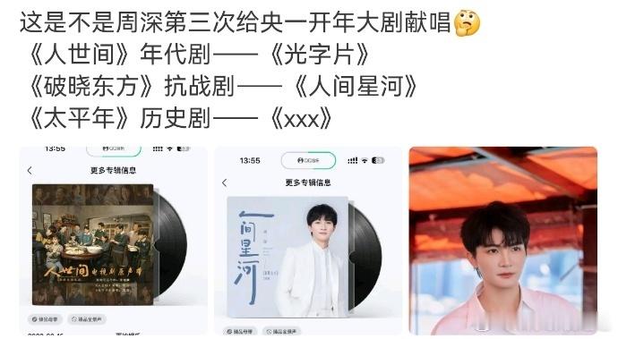 周深第三次献唱央视开年大剧连续三次为央视开年大剧献唱,这份认可很能说明实力。每首