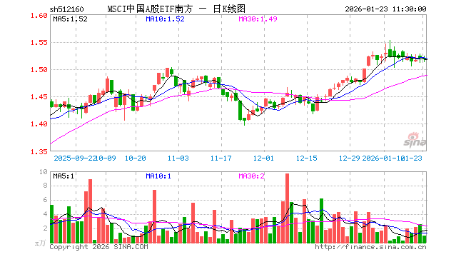 1月23日,截止午间收盘,MSCI中国A股ETF南方(512160)跌0.20%,报1.517元,成交额150.95万元。MSCI中国A股ETF南方(512160)重仓股方面,贵州茅台截止午盘涨0.14%,宁德时代跌0.36%,招商银行涨0.00%,工业富联跌4.06%,中国平安跌0.35%,紫金矿业涨1.01%,中际旭创跌6.10%,长江电力跌0.65%,农业银行跌0.29%,寒武纪跌1.77%。