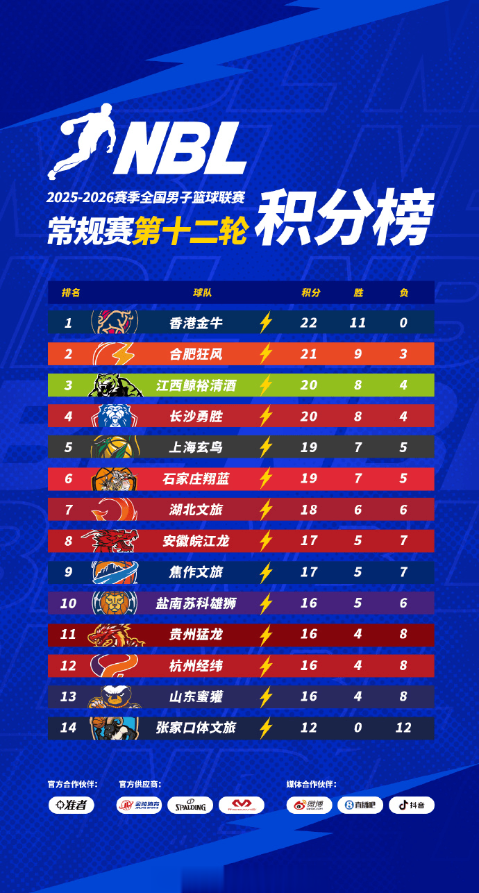 配文:[积分榜]2025-2026赛季NBL常规赛积分榜(截至第十二轮结束)
