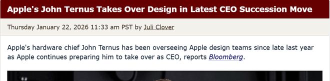 [环球网科技综合报道]1月23日消息,据MacRumors报道,自去年年底以来,苹果硬件主管约翰·特纳斯一直在负责苹果的设计团队,此举被视为苹果在为他接任首席执行官一职做准备。