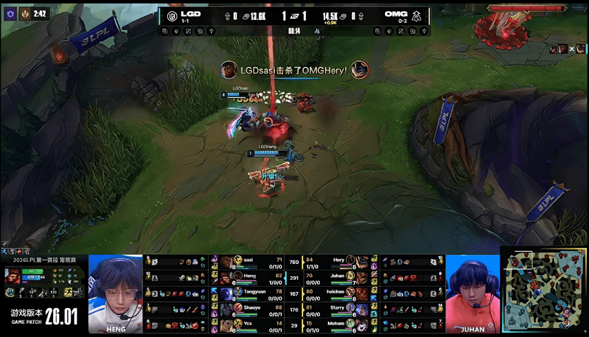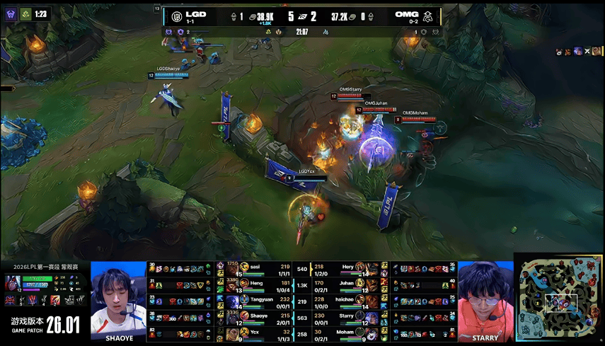 虎扑01月23日讯[GAME1]LGD蓝色方,OMG红色方