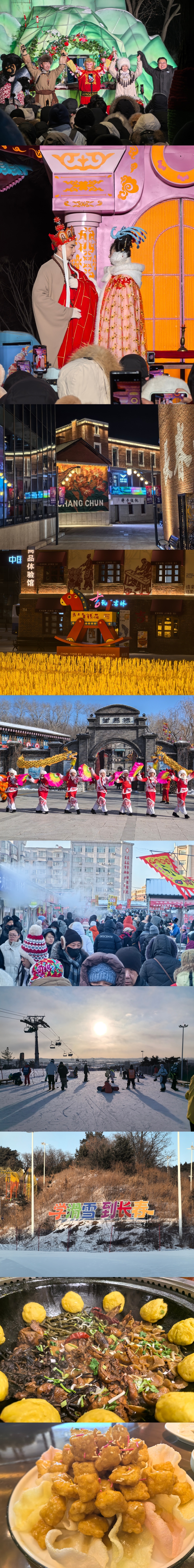 醉美春城热雪沸腾 【发现长春绝佳拍摄打卡点合集】长春冬季绝美打卡拍照攻略!小风哥作为本地人的私藏,今天分享给大家!从晶莹剔透的蓝冰秘境,到绚烂震撼的城堡烟花;从复刻天坛的巨型冰雕,到冰封万朵玫瑰的艺术奇观… 我花了三天时间,暴走全城,给你们整理出了这份 《长春冬日必打卡全地图》 ,照做就能刷爆朋友圈,建议先收藏再细看!🧳 出行前准备(保命又出片版)这几天赶上四九长春嘎嘎冷,穿搭公式:遵循 “洋葱式穿法”。内搭保暖内衣,中间毛衣、抓绒或轻薄羽绒,外层必须是加厚羽绒服。大厚袜子,大棉裤、围脖,口罩也得套上,颜色上,白色、浅蓝、粉色、红色 在雪地里巨出片!必备神器:手机支架、加厚触屏手套(拍照不用摘)、暖宝宝(贴手机防掉电和脚底)、保温杯(很多景区提供热水)。交通:龙嘉机场有高铁直达长春站,市内地铁+打车很方便。 🌟 三日精华游行程(本地人带你玩透)Day 1:经典冰雕奇观 & 复古文艺之旅上午:伪满皇宫博物院薄雾笼罩的清晨,去感受历史的重量。伪满时期的建筑在冬雪覆盖下别有一番萧瑟沧桑的美感。红墙白雪,是拍摄复古大片的好地方。下午:新民大街冰雪文化长廊这是今年冬天长春的 “王炸” 项目!不少新民大街的兴亚式建筑,也极具欣赏性。长春历史文化博物馆,了解长春的同时,你会发现适合拍照的点位!文化广场“冰天坛”:以“盛世中华”为主题的复刻冰雕,晶莹雄伟,绝对是地标级打卡点。对面有音乐主题冰雕和杨靖宇支队的军旗。晚上:这有山 / 长影旧址博物馆“这有山”,这是个室内的山形文旅小镇,网红拍照打卡地。入口处,楼上从望山亭向对面拍,还有开山仪式在上午十点半。去 长影旧址博物馆,看看新中国电影摇篮,大门口,毛主席像打卡,里面有神奇光影效果。Day 2:梦幻冰雪乐园 & 浪漫烟花之夜长春冰雪新天地,冰雪界的“迪士尼”,规模和震撼程度国内顶尖。今年用85万立方米冰雪打造了200多座冰雕,不仅有中华楼、布达拉宫等地标复刻,还有以《千里江山图》为蓝本的冰瀑!有个冰雕王座适合拍照! 1314米空中千米雪漂流(寓意太浪漫了)、520米激情冰滑梯(刺激解压)。体验加拍照!选项B:肆季南河粉雪嘉年华更适合 “爱玩雪”和“拍照控” 的姐妹!这里是 “玩雪天堂” ,主打粉雪和童话氛围。打卡亮点:全国首个 “蛋仔派对”实景雪乐园,超多萌趣雪雕;百米粉雪城堡是核心打卡点;夜晚的 城堡烟花秀 是重头戏,城堡在光影和烟花映衬下,浪漫值爆表!拍照和视频都要!晚上:桂林路美食街在冰雪里疯玩一天,必须用热量填补!去桂林路,从地道锅包肉、雪衣豆沙,到烤冷面、韩国料理,一站式吃遍,感受长春的烟火气,拿上冰糖葫芦拍照超可爱。Day 3:自然秘境蓝冰 & 艺术冰封玫瑰上午:净月潭国家森林公园长春的“城市绿肺”,冬天变身蓝冰秘境。“梦幻蓝冰” 是自然形成的奇观,冰层清澈泛着浅蓝色,如同异域星球。沿着湖边寻找,很容易找到纯净无杂质的蓝冰面,站在冰上,或者坐着都很可爱,拍出高级感大片。景区还有森林雪漂流,雪地摩托,滑雪场,还有投喂驯鹿,体验加拍照,美爆朋友圈! 下午:青怡坊云琅艺术中心·冰封玫瑰公园 将无数朵玫瑰用艺术手法冰封起来,有一个心形冰瀑还有一个五星形冰瀑,艺术感和出片率双高,最贴心的是门口提供了拍摄最近效果示范,原来拍下冰心和自己可以用全景模式,从下往上拍,超震撼!傍晚:54路有轨电车结束旅程前,去体验一把 《人世间》同款 的复古有轨电车。挑黄昏时分,看着电车叮叮当当驶过覆雪的道路和街道,两侧是光秃的树木,电影感十足,是长春独有的城市记忆。坐在墨绿色座椅上,把头靠向窗外,超有思想意境!如果还有时间可以到春京西历史街区,几处带有长春字样的墙壁适合做打卡背景,朝花夕拾咖啡馆又不少鲁迅元素。北书房也很文艺,顺带可以看看。📸 绝美出片机位与穿搭建议净月潭蓝冰:穿 纯白色或莫兰迪色系 的服装,与蓝冰的冷冽感形成对比,高级清冷风。可以躺下或坐下,用广角镜头拍摄。冰封玫瑰:建议穿 黑色、深红色或亮色(如宝蓝)的衣服,在晶莹的玫瑰丛中非常突出。可以靠近冰玫瑰,拍特写或侧脸。肆季南河城堡烟花:提前占好城堡正面的机位,用手机或相机的夜景模式。穿带有 毛绒帽子或围巾 的浅色外套,烟花亮起时,回头或仰头,氛围感直接拉满。新民大街冰雕夜景:利用冰雕本身的光影,拍剪影或轮廓光。穿修身的衣服效果更好。🍜 美食拍照贴心提示,美食必吃也必拍!锅包肉:酸甜酥脆,东北菜灵魂,光线调好。铁锅炖:一群人围坐热炕头,吃炖大鹅炖鸡炖鱼,拍掀锅盖一瞬间。雪衣豆沙:工艺复杂的特色甜品,像吃云朵,咬开拍!朝鲜冷面/烤肉:朝鲜族风情元素都要带上!主题偏好 推荐组合路线 核心体验【极致出片】 净月潭蓝冰、驯鹿 + 云琅冰封玫瑰 + 肆季南河烟花+冰雪新天地 自然奇观、艺术装置、梦幻夜景,张张大片【经典必玩】 冰雪新天地 + 伪满皇宫 + 新民大街冰雕+这有山 + 54路电车+春京西+北书房 感受最宏大、最经典的冰雪文化与历史【轻松亲子/闺蜜】 肆季南河嘉年华 + 长春动植物公园夜游+ 长影旧址博物馆+永兴早市+桂林路美食街玩雪乐趣、室内休闲、城市慢生活最后的贴心话:长春的冬天虽然冷,但它把所有的浪漫和热情都凝结在了冰与雪之中。带上这份攻略,约上你最重要的人,来长春开启一场冬日童话之旅吧!这里