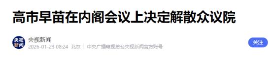 日本首相高市早苗正式宣布, 1月23日上午,日本首相高市早苗带着全体阁僚,在内