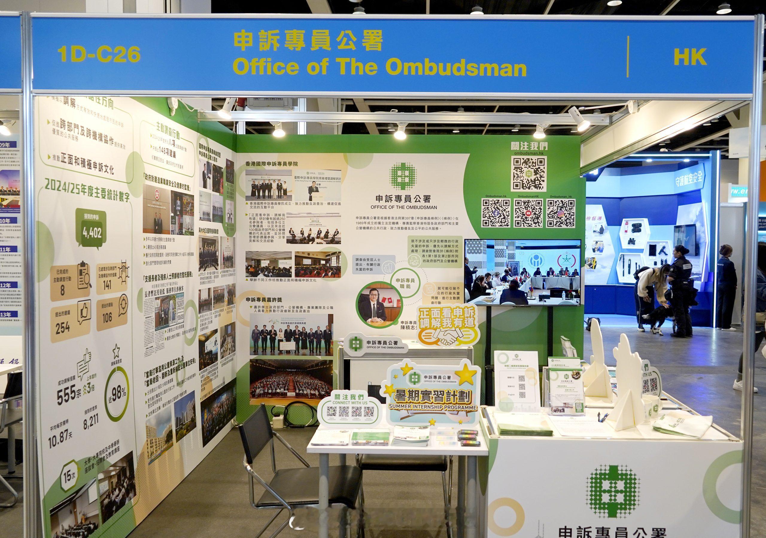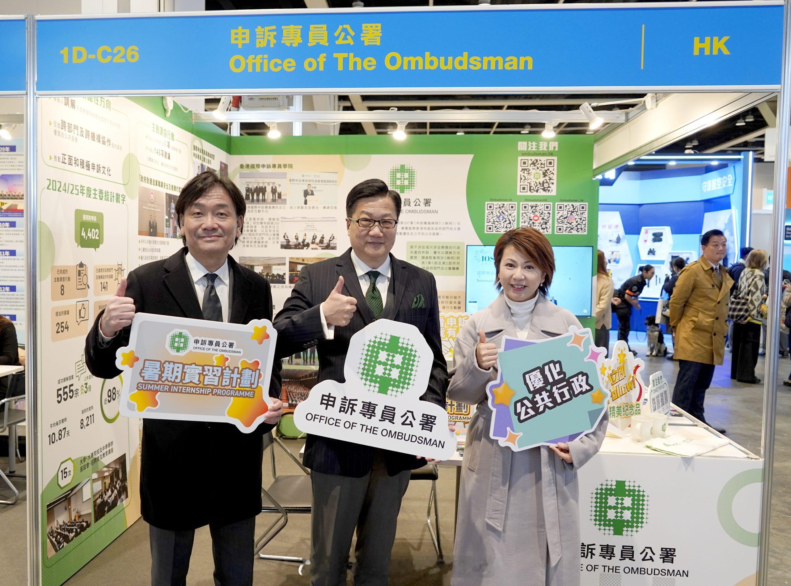 香港申诉部门香港申訴監督 「香港申訴部門申訴專員公署參與教育及職業博覽2026 首推暑期實習計劃..」香港申訴專員公署昨日(1月22日)起一連四日在「教育及職業博覽2026」設置展位,介紹公署的功能、職權、工作範圍和成果,並提供招聘資訊,特別是首度推出的暑期實習計劃,吸引大專學生深入認識公署工作,親身體驗公共服務。香港申訴專員陳積志聯同公署首長級人員親臨會場參觀展位,並與參觀人士及求職者交流。他表示:「公平及高效的公共行政是社會穩健發展的重要基石。公署專責監察香港的公共行政,希望鼓勵更多年輕人積極參與公共事務,了解良政善治的重要性,推動正面申訴文化,共同建設更美好、更優質的社會,為國家及香港的發展作貢獻。」公署展位內容豐富多元,除了介紹公署的職能及申訴專員的三大策略性方向外,亦透過上年度主要統計數字、重點主動調查行動、香港國際申訴專員學院的成立及各類工作成果,全方位展示公署在促進良好公共行政及推動正面申訴文化的努力和成效。參觀人士反應熱烈,踴躍與公署職員互動交流,了解不同職位的要求、發展前景及工作體驗。陳積志指,公署的工作極具意義,為市民和社會帶來正面及深遠的影響,歡迎有志服務社會、敢於承擔的年輕人積極考慮加入公署。他續說︰「公署今年首度推出暑期實習計劃,旨在讓準備投身社會的大專學生深入認識及體驗公署的工作,把握暑期學習及累積經驗,為未來事業發展奠定基礎。」「教育及職業博覽2026」由昨日起至1月25日於香港會議展覽中心展覽廳舉行,免費入場。公署展位位於展覽廳1D,編號為1D-C26。公署並將於1月24日下午一時三十分至二時在展覽廳職業廣場舉行專題講座。其後,公署亦會於1月26日至30日參與香港大學春季就業博覽會,期待與有志加入公署的學生及校友交流。有關招聘資訊,請參閲公署網頁。申訴專員公署傳媒如有查詢,請電郵至enquiry..……. 香港