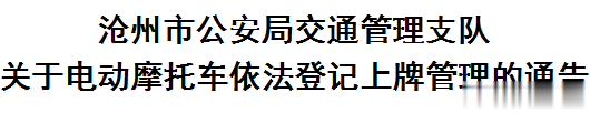 为进一步规范我市道路交通安全管理工作,保障广大人民群众生命财产安全。根据《中华人民共和国道路交通安全法》《机动车登记规定》等相关法律法规,现就电动摩托车依法办理注册登记上牌相关事宜通告如下: