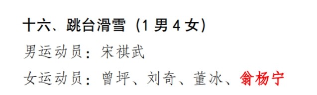 2024年1月,2024年江原冬青奥会,翁杨宁是中国队参加跳台滑雪项目的4名运动员之一,她也是我省参加冬青奥会跳台滑雪的第一人。