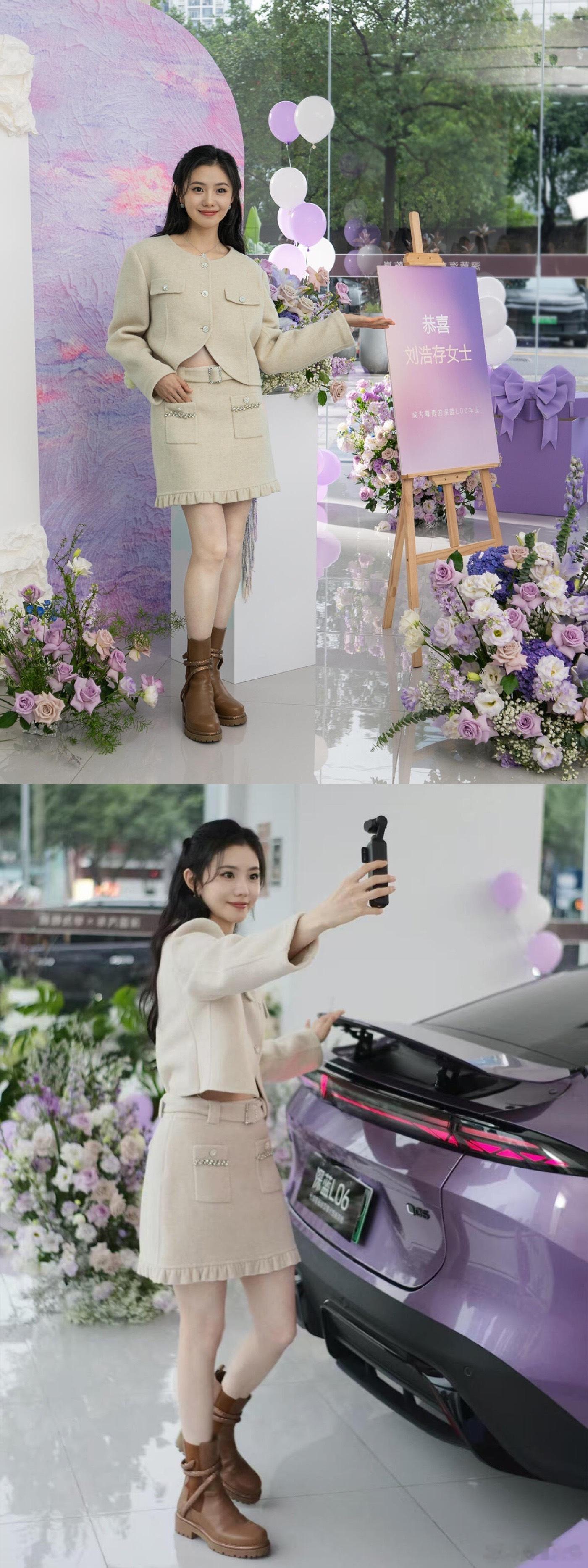 刘浩存申请当深蓝内测官 起猛了!看见刘浩存当上测评博主了!香车配美人,紫色车身高