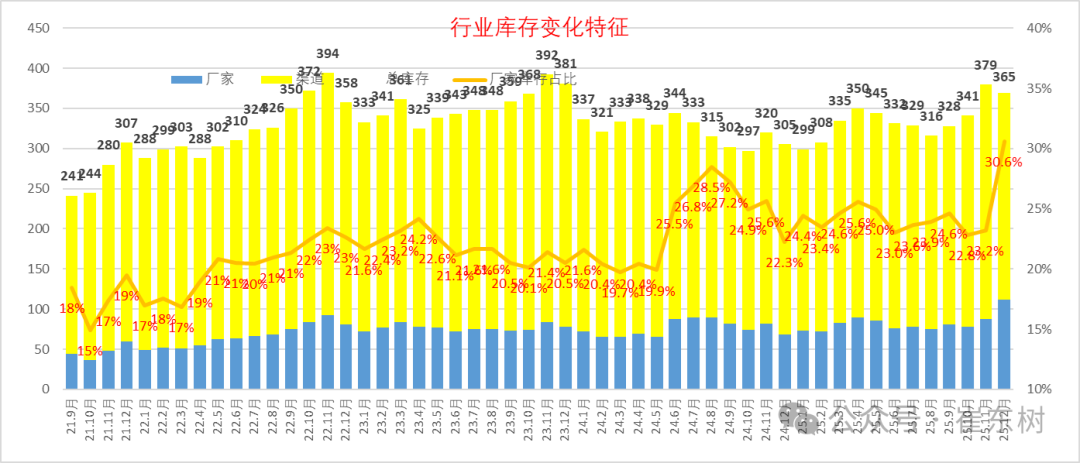 由于前期市场预期较好,厂商生产热情较高,总体行业库存压力相对不可控。目前厂家库存占比处于高位,市场逐步进入春节前后的政策波动期,未来几个月销量消化库存压力不小。