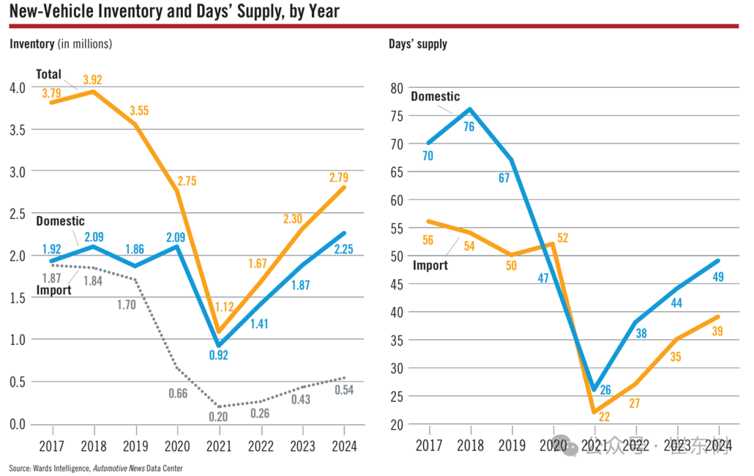 美国的库存目前是在40-50天,总体的库存压力不大,这也是中国车市参考的对象。