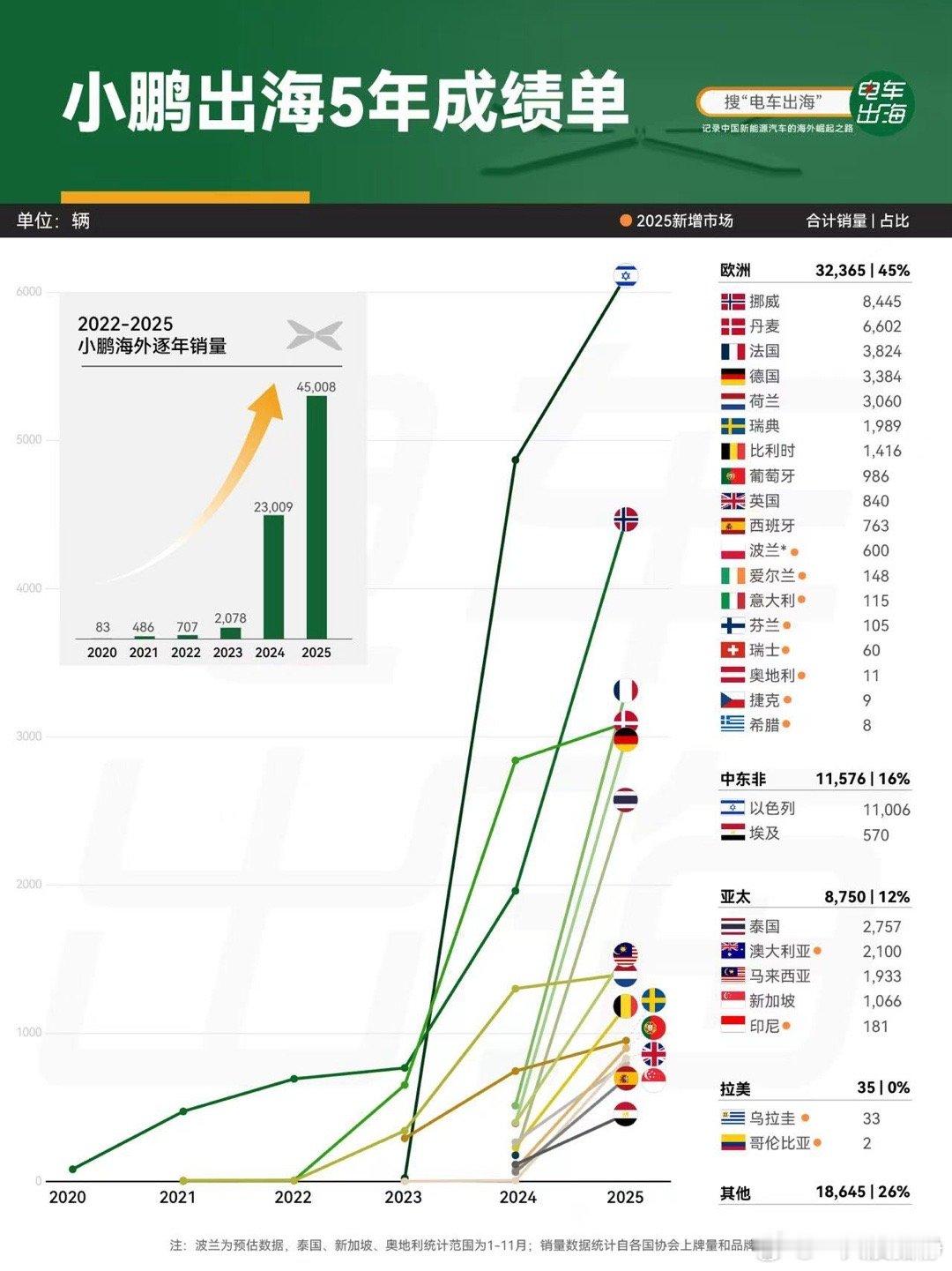 小鹏汽车2025年海外纯电卖爆啦!年销超4.5万辆,猛增96%,拿下新势力出海冠军+自主品牌全球榜眼!欧洲稳、亚太火、中东非布局新据点,G6和X9在海外多地狂揽销冠。更牛的是,它已在60国铺开网络,从“卖车”升级为“扎根当地”的体系化出海,为中国品牌打了个超棒样板!自豪自豪汽车资讯新能源汽车小鹏汽车小鹏获新势力纯电出海第一2025海外纯电销量小鹏列自主品牌前二