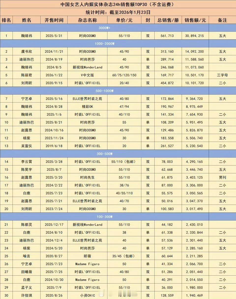 陈丽君v中文版24小时销量169717本,销售额破1050w+,目前女明星第5!冲冲冲陈丽君杂志销量陈丽君杂志销售额破千万