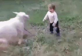 撞上去都是轻轻的,看的出羊羊只是想和小孩玩!