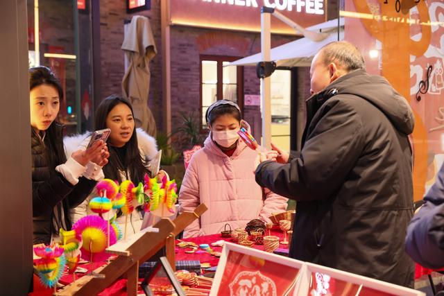 走进滨港商业中心今潮8弄,百年弄堂升腾起“小辰光味道”的烟火气:国风装扮的“卖货郎”穿行在张灯结彩的老弄堂中,叫卖声串联起非遗展台、手作体验、各地美食等。孙彼得在非遗展台前驻足良久,欣赏着剪纸、糖画、面塑、绒花等传统技艺。他来上海3年多,对上海的多元文化格外着迷,特别喜爱糅合现代元素的非遗作品。“我打算学两招,过年的时候分享给更多外国朋友,让大家一起体验热闹的中国年。”